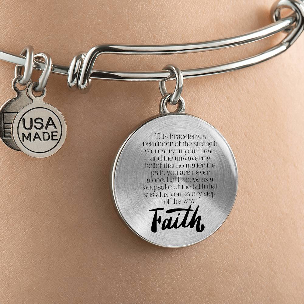 "This bracelet is a reminder of the strength you carry in your heart and the unwavering belief that no matter the path, you are never alone. Let it serve as a keepsake of the faith that sustains you, every step of the way."